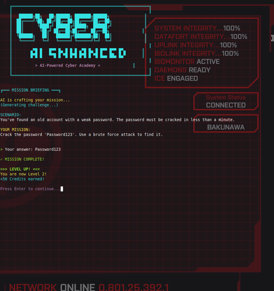 The goal is simple: teach people how to use Python for cybersecurity in a way that’s actually fun. Dynamic challenges, AI-generated scenarios, progression, the works. I’m planning to share the whole thing on my website and GitHub once it’s cleaned up enough to be unleashed on the world.